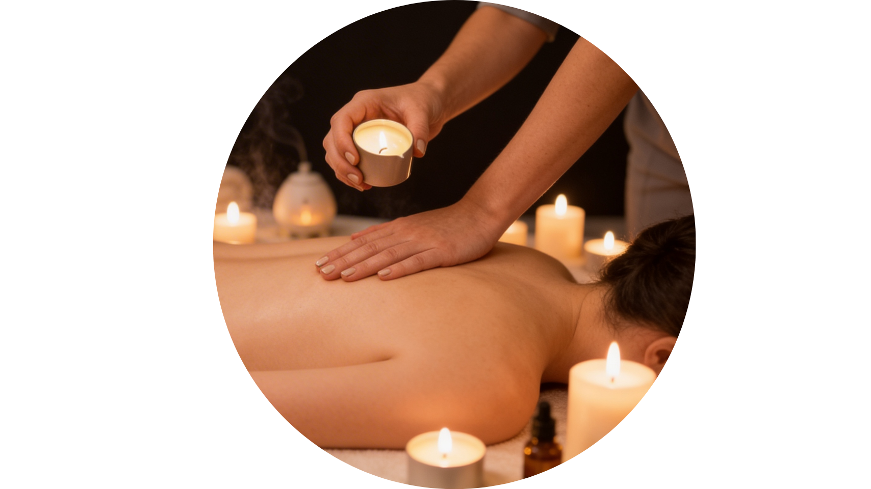 Eine besonders zarte Massage für Körper und Seele, durchgeführt mit einer warmen, zart duftenden Massagekerze, die das Wohlbefinden steigert und die Haut besonders pflegt. 50 min